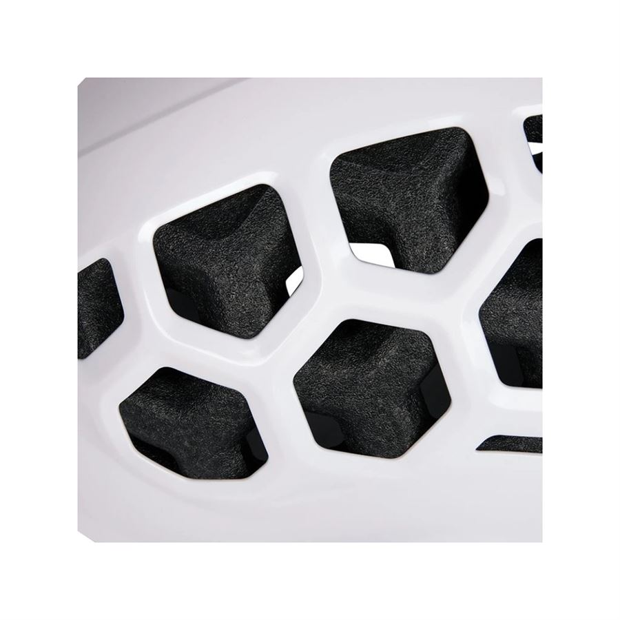 Vnější ABS skořepina opatřena dodatečným profilováním v místech překryvu větracích otvorů