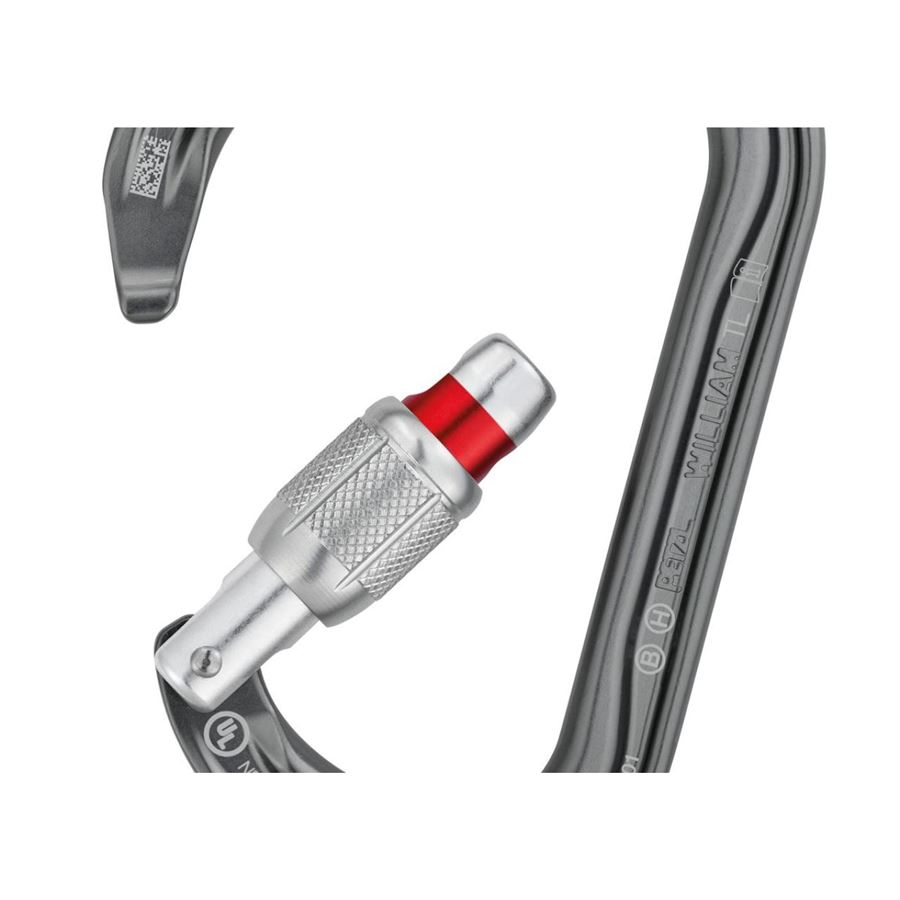 Lehká asymetrická karabina WILLIAM je vyrobena z hliníku. Je to velká HMS karabina tvaru hrušky, která je vhodná pro snadné připojení více prostředků. Její plynulý design vnitřní části a systém zámku Keylock usnadňují manipulaci. Karabina WILLIAM je k dispozici ve třech verzích pojistky zámku. WILLIAM lze použít s dělící příčkou CAPTIV, která udržuje karabinu ve správné poloze, zatíženou v hlavní podélné ose, což je vhodné pro použití se slaňovacím zařízením.