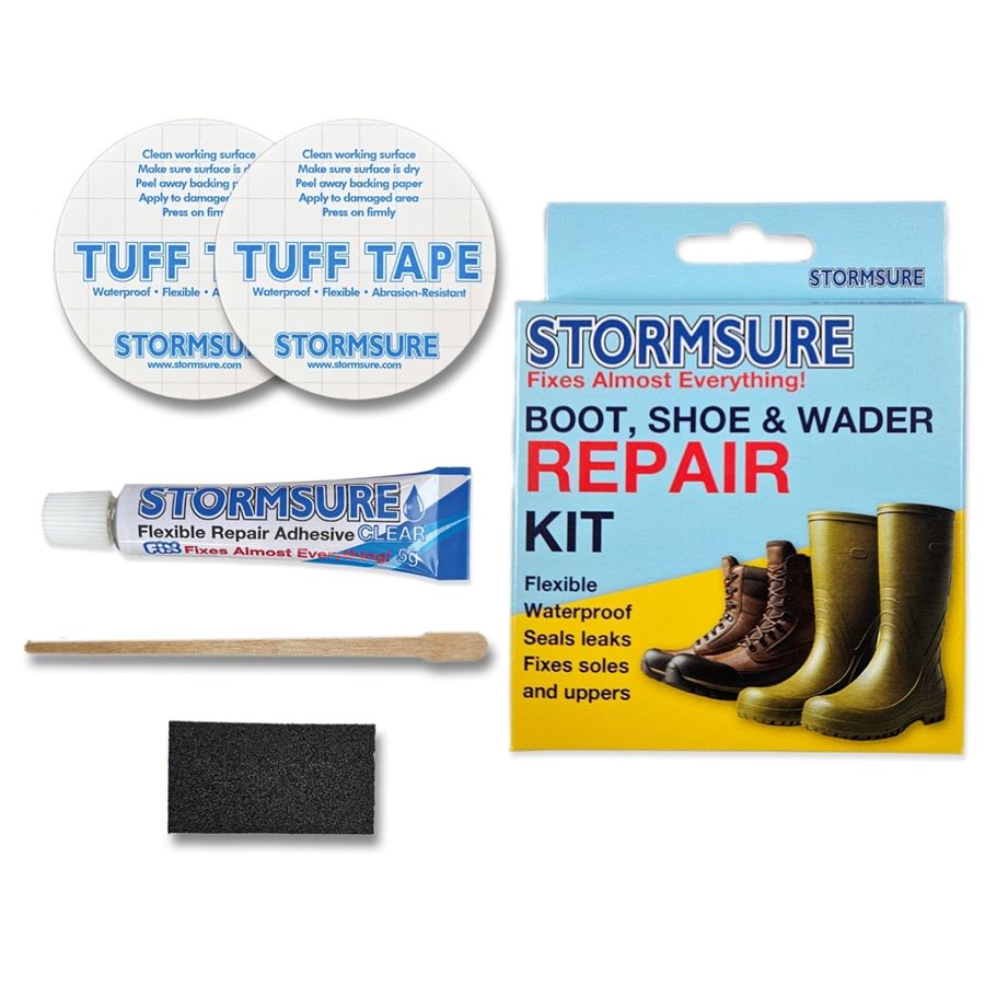 Sada na opravu bot, holínek a brodících kalhot Stormsure je komplexním řešením pro rychlou a efektivní opravu všech typů bot a obuvi. Sada s čirým lepidlem.