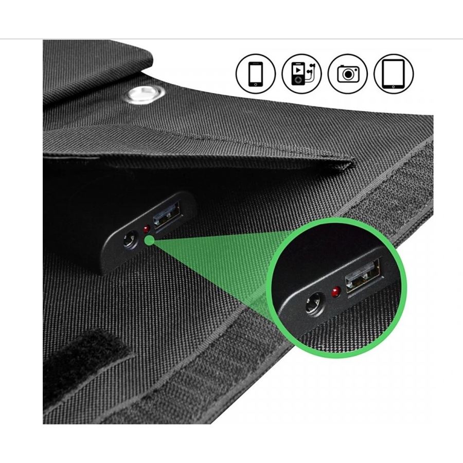 Díky USB výstupu máte dostatek energie pro veškerá zařízení do 5V/2,4A max. Pomocí DC výstupu můžete nabíjet elektroniku do 19V/1,5A. Solární panel můžete využívat při všech outdoorových aktivitách. Stačí použít vhodnou redukci z USB pro vaše zařízení