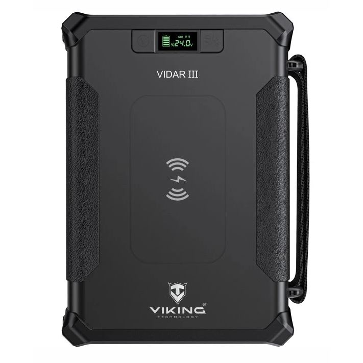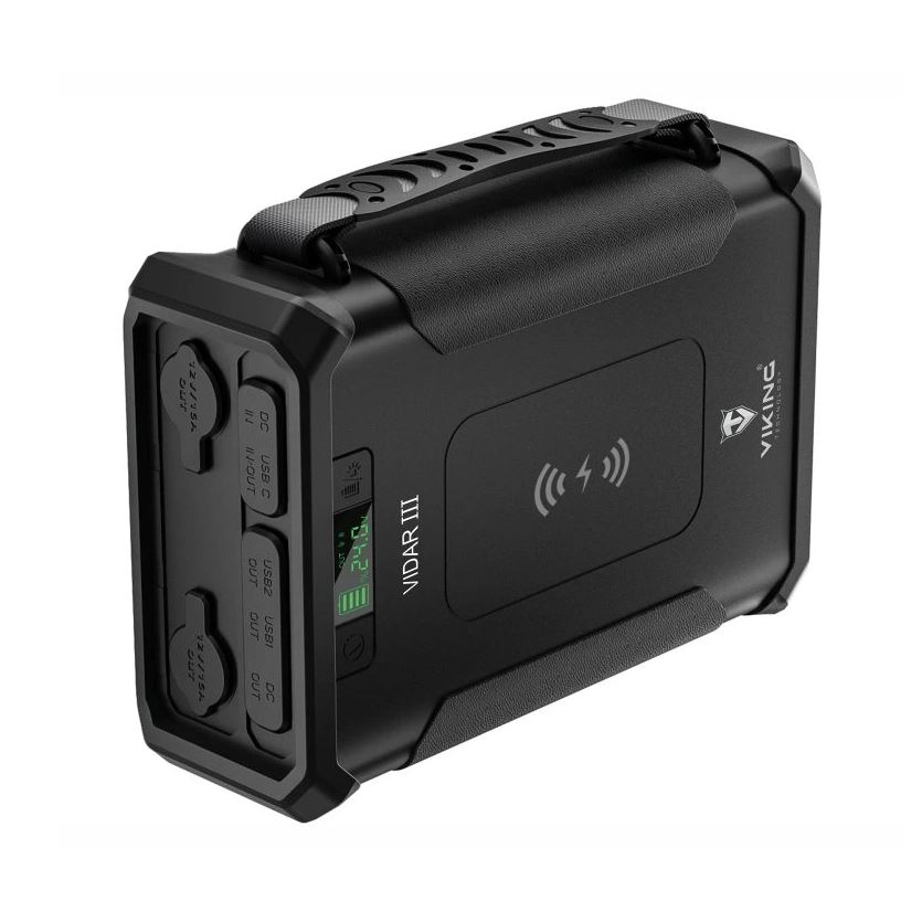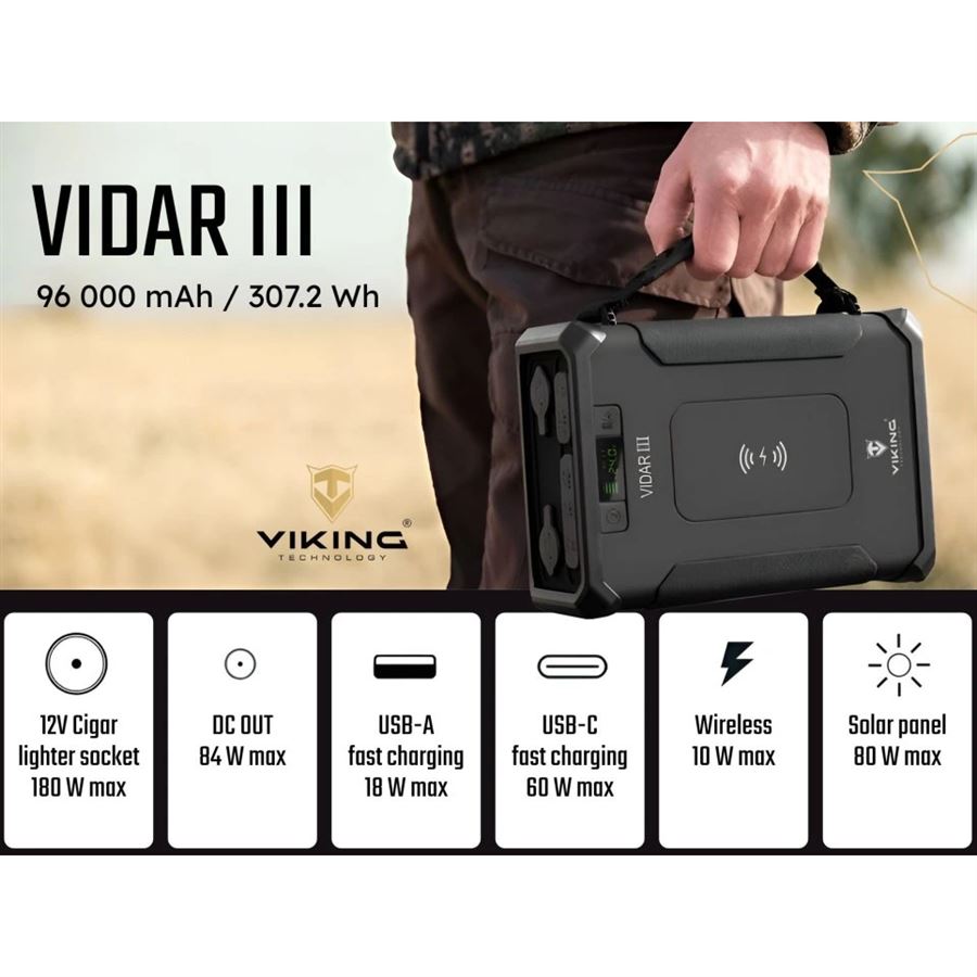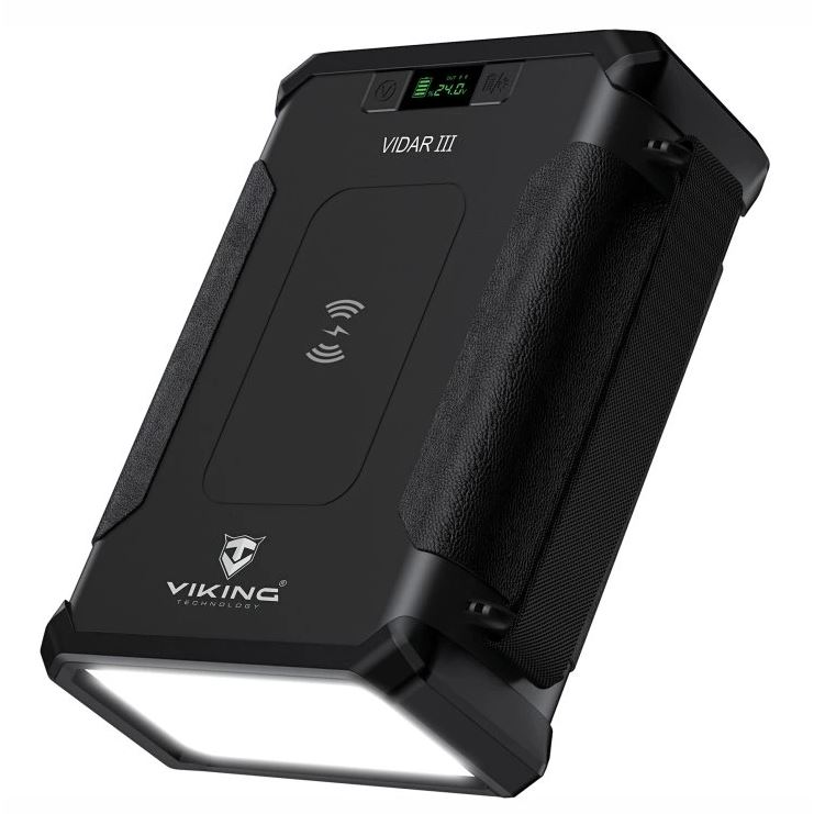 který zobrazuje stav baterie v procentech, aktivní výstupy a jejich zátěž v ampérech. Ať už jste kdekoliv, s powerbankou Viking VIDAR III budete