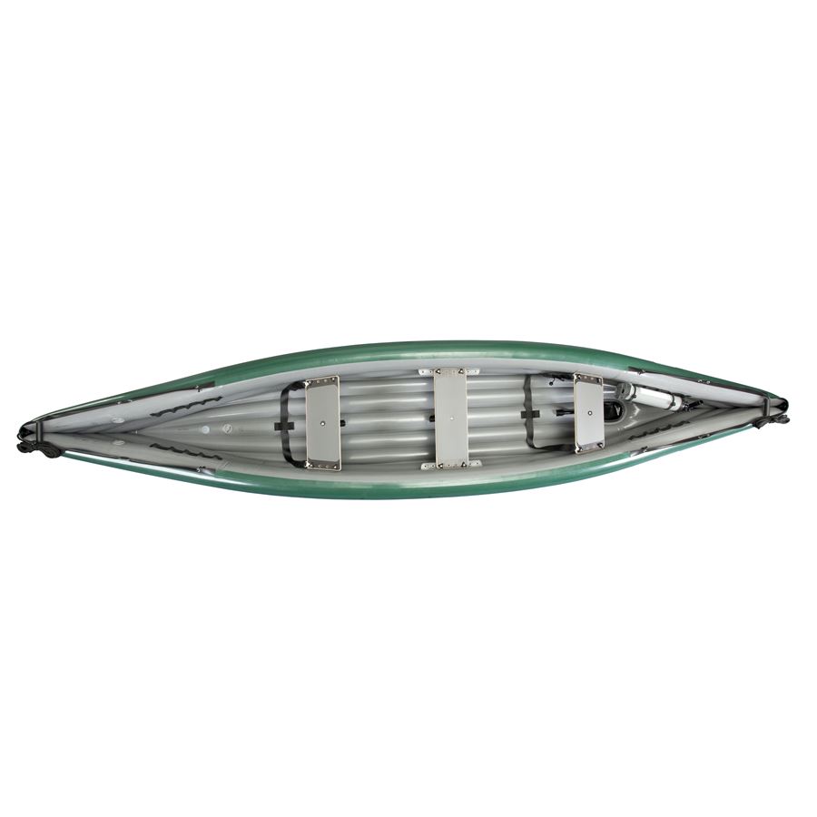 . Bok je tvořen dvěma nafukovacími válci nad sebou, čímž je dosaženo úzké lodi, která disponuje velkým vnitřním prostorem pro vaši bagáž. Prostřední sedačka je širší, takže nabídne komfortní prostor pro jednoho XXL vodáka, nebo pohodné místo pro dvě děti vedle sebe. Prostřední sedačka se dá vydělat a získáte tak