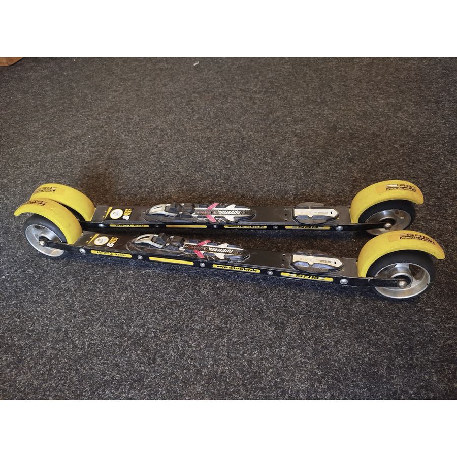 Lyže jsou osazeny starším typem vázáním Rottefella Rollerski, které je namontováno na vel. boty cca 44- 46 EU